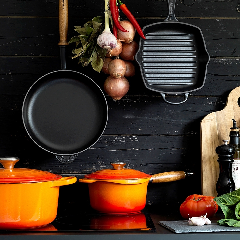 Enameled cast iron is a remarkable and robust material that performs well with modern requirements for food preparation and cooking. Whether you choose to stir-fry, slow-cook a casserole, sear a steak or bake a cake, there is a shape that is suitable. Cast iron performs well for either slow cooking or high-temperature searing.